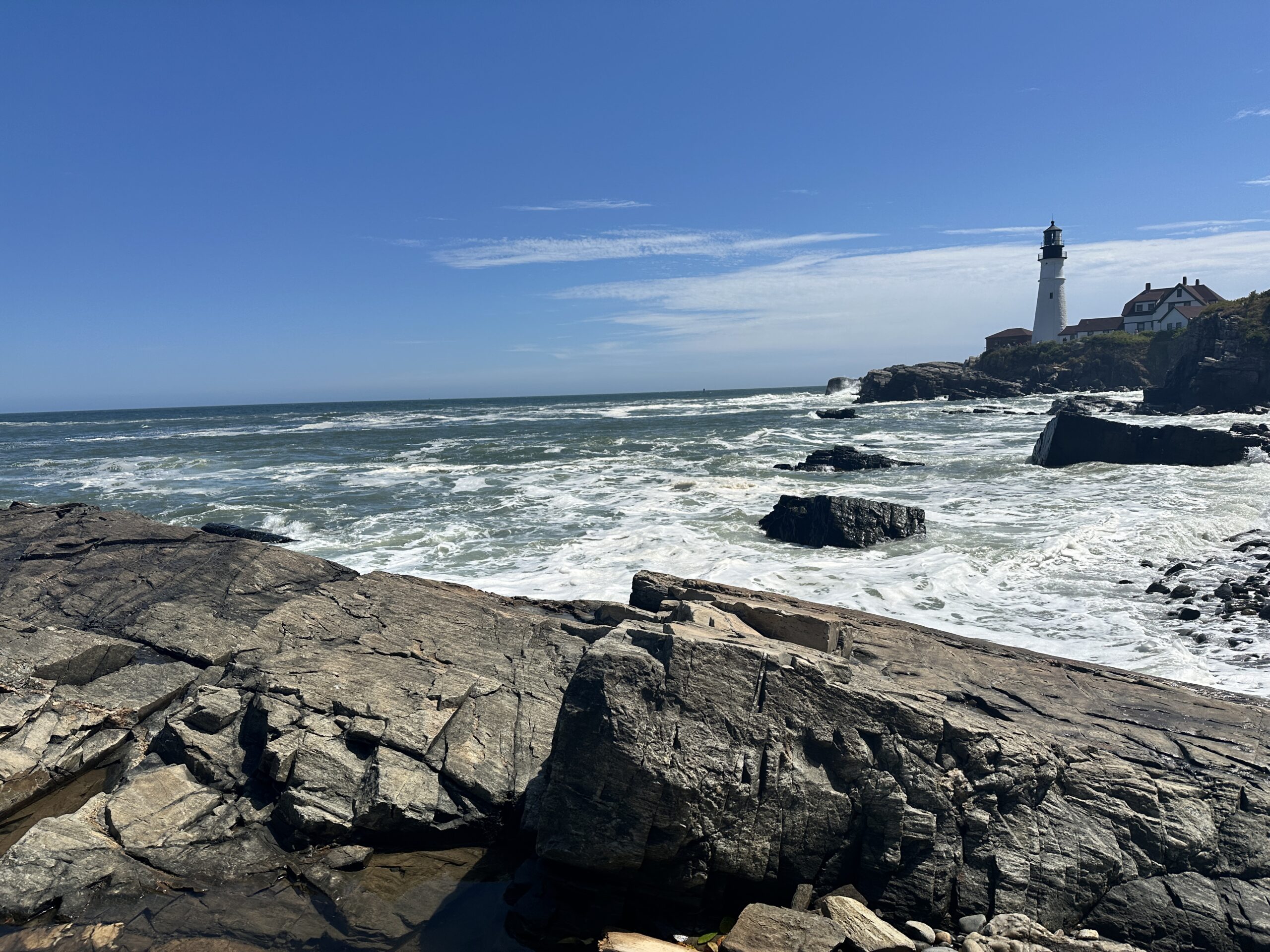 One part of my vacation had me in Maine for a day or two. I had the chance to go over to the Portland Head Light at Cape Elizabeth. There is a beautiful lighthouse on the rocky coast, with walking paths that seem to go on for miles. I spent hours there – walking, sitting, reflecting, and renewing, and oh how that was needed.